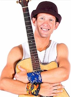 waarvan hy kitaar, klavier en mondfluitjie op die verhoog speel.